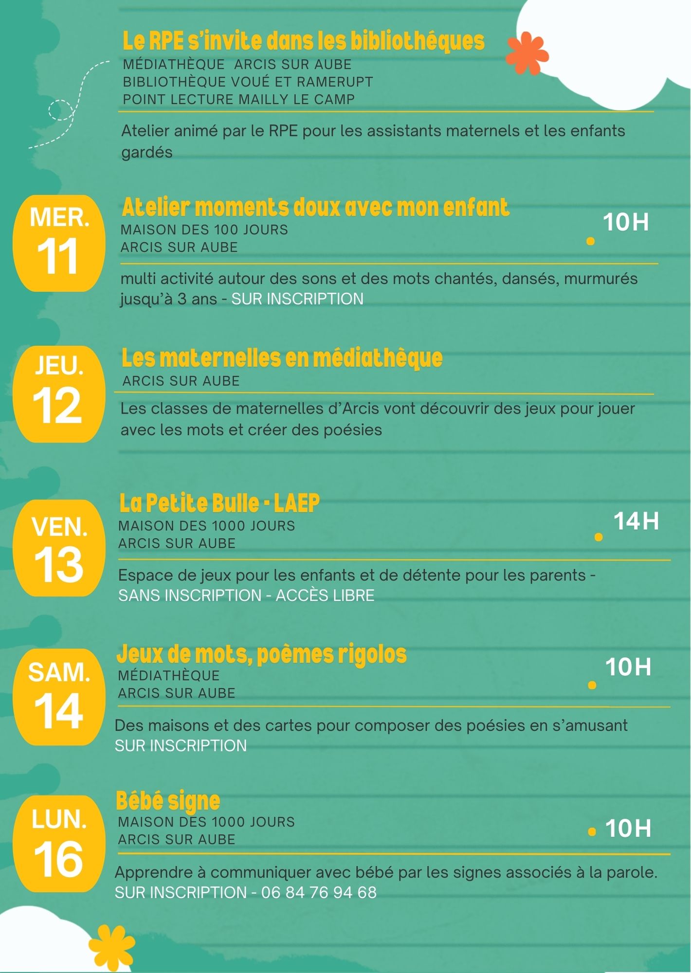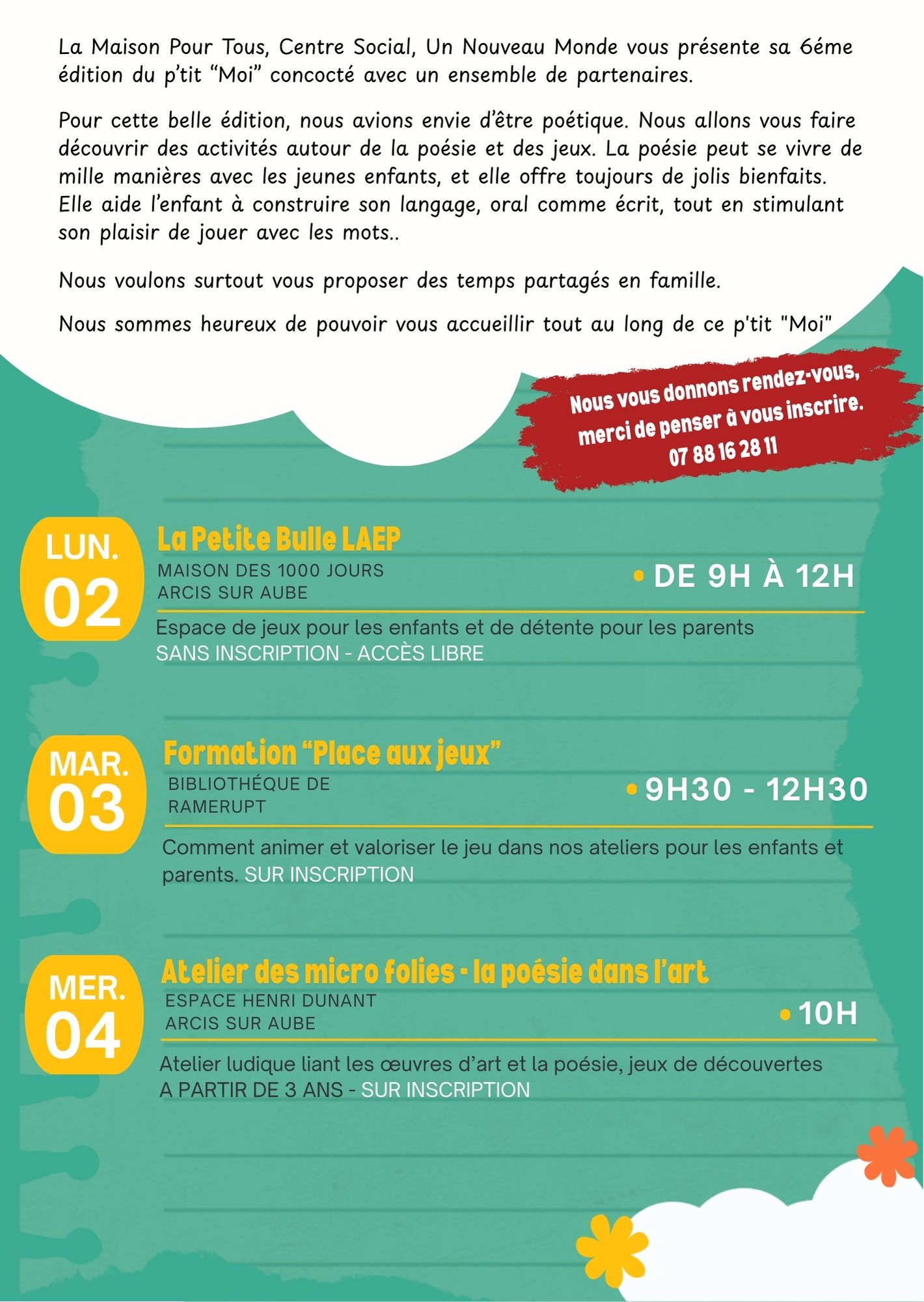 Renseignements et inscriptions au 07 88 16 28 11